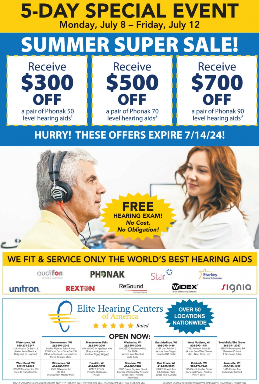 Jul 01, 2024. Elite Hearing Centers of America Health & Wellness Ads from Watertown Daily Times