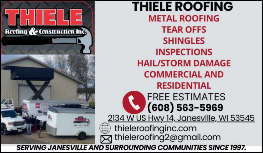 Aug 01, 2024. Todd Thiele Roofing Construction Ads from Beloit Daily News