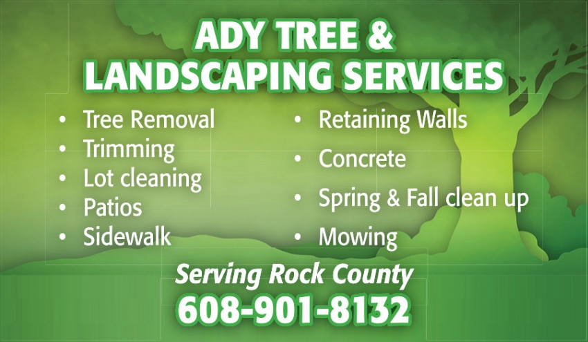 Aug 01, 2024. Ady Tree & Landscaping Services Landscaping Ads from Beloit Daily News