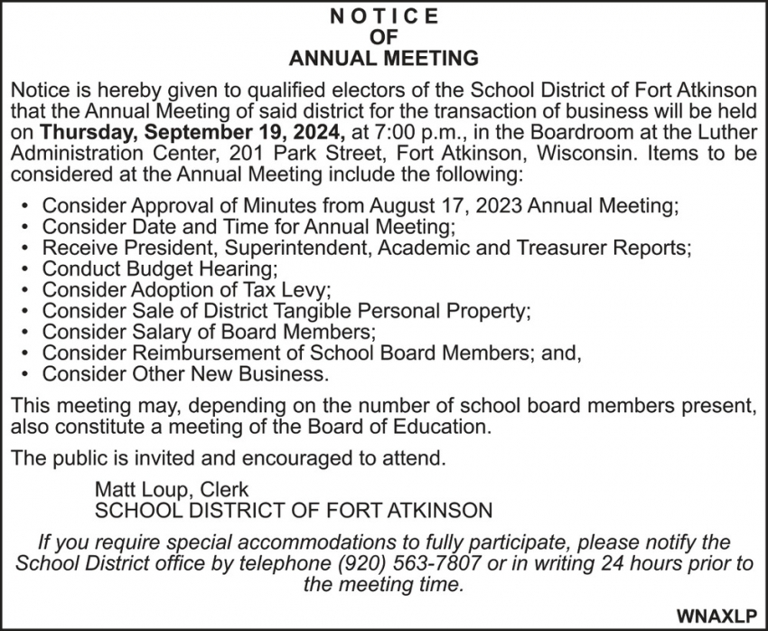 Sep 09, 2024. School District of Fort Atkinson Education Ads from Daily Jefferson County Union
