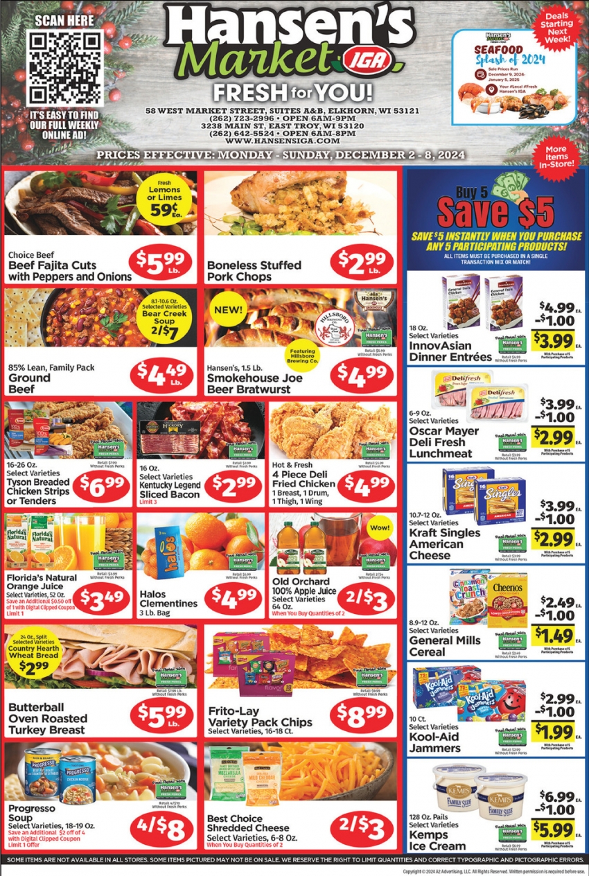 Dec 04, 2024. Hansen's Market IGA Grocery Store / Market Ads from Walworth County SmartShop
