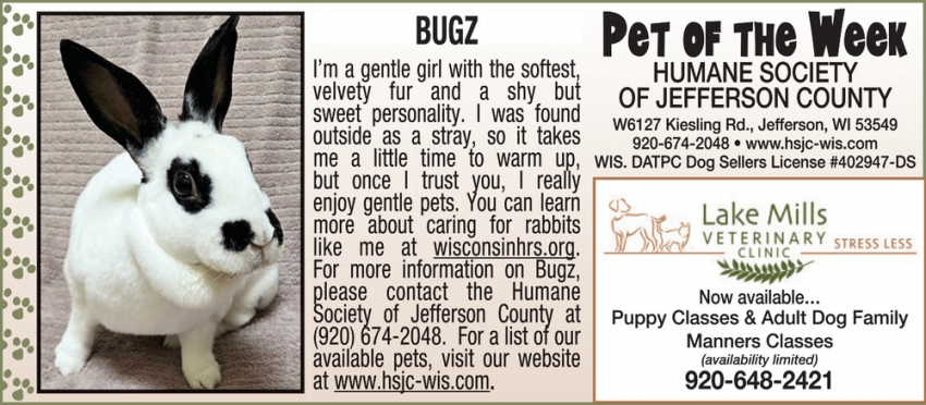 Dec 12, 2024. Lake Mills Veterinary Clinic Pet Ads from Lake Mills Leader