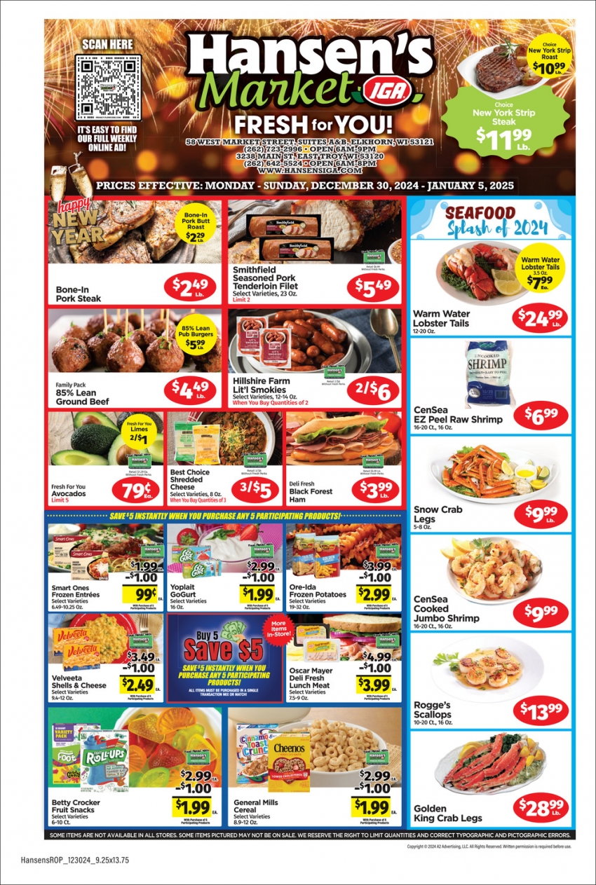 Jan 01, 2025. Hansen's Market IGA Grocery Store / Market Ads from Walworth County SmartShop