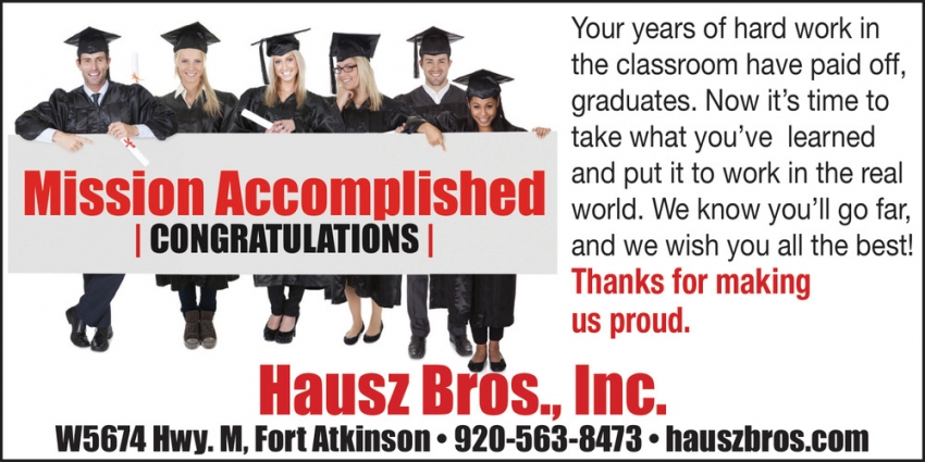 Ads for Hausz Bros, Inc. in Fort Atkinson, WI