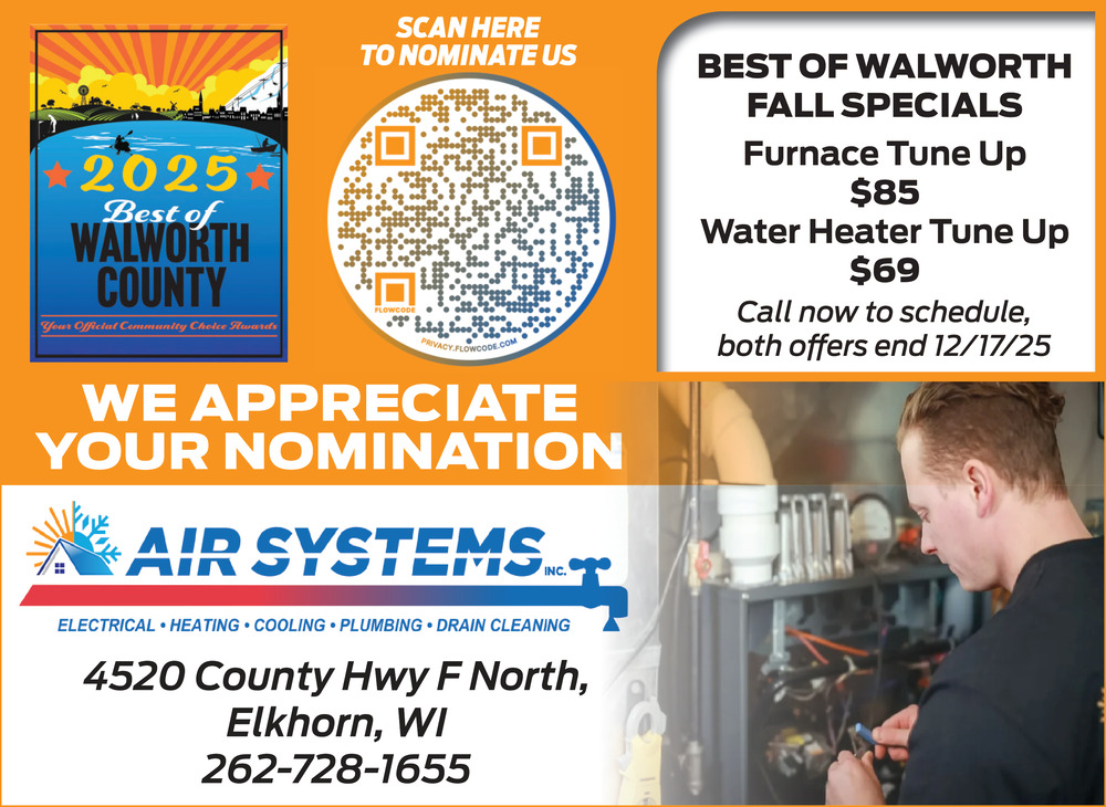 Oct 01, 2025. Air Systems Inc Heating & Air Conditioning Ads from Walworth County SmartShop