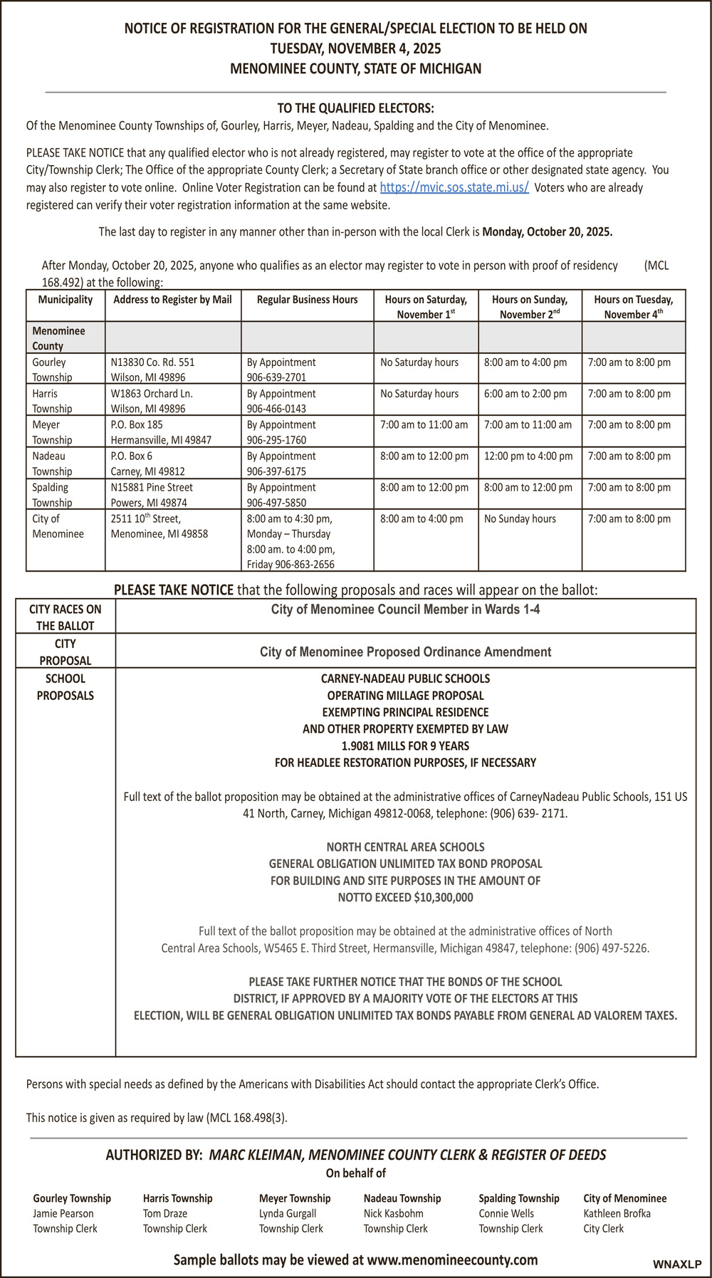 Oct 01, 2025. Menominee County Public Notice Ads from EagleHerald