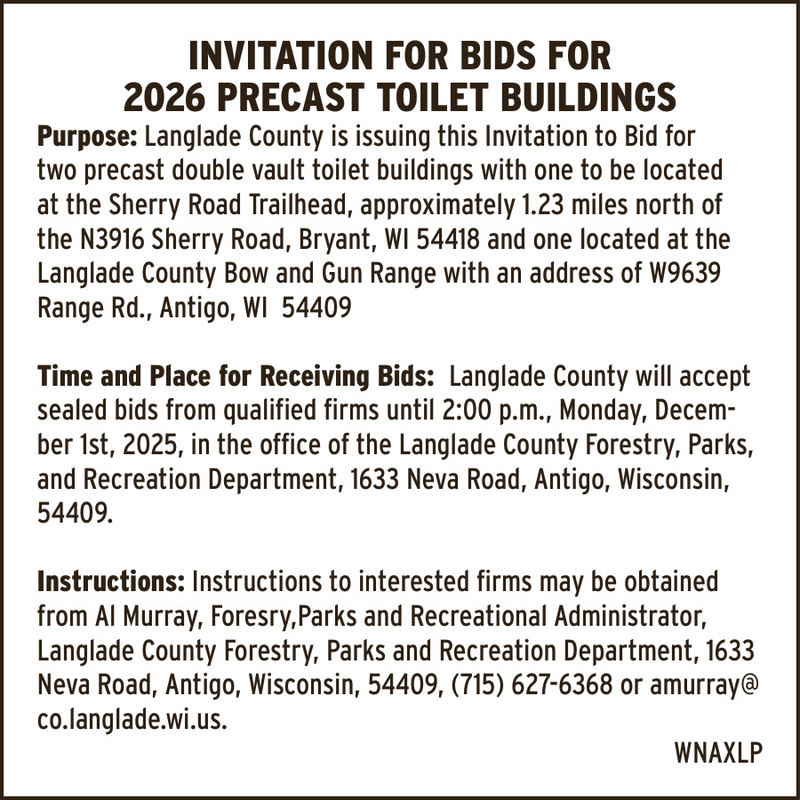 Oct 01, 2025. Langlade County Fairgrounds Public Notice Ads from Antigo Daily Journal