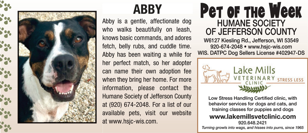 Oct 02, 2025. Lake Mills Veterinary Clinic Pet Ads from Leader Independent