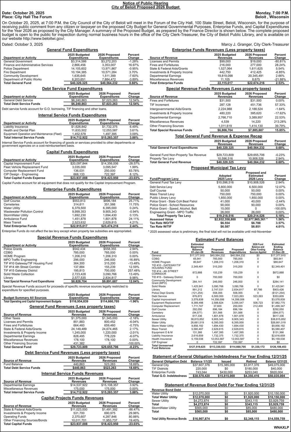 Oct 03, 2025. City Of Beloit Public Notice Ads from Beloit Daily News