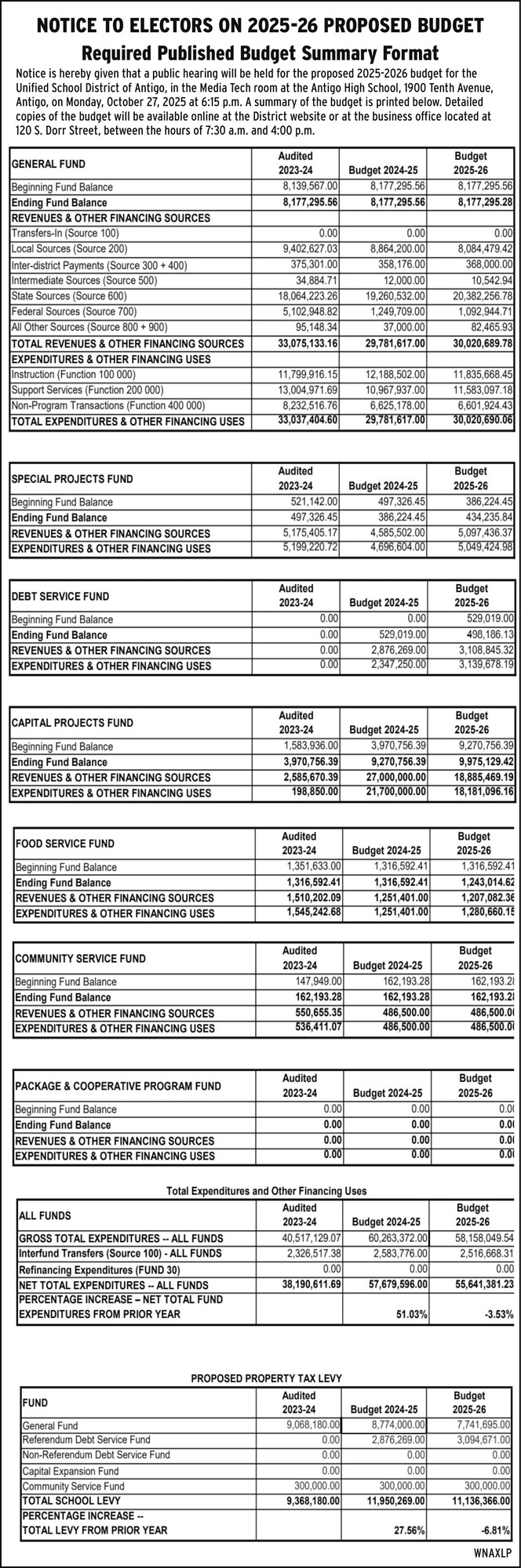 Oct 10, 2025. Unified School District of Antigo Public Notice Ads from EagleHerald