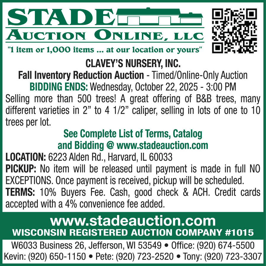 Ads for Stade Auction Online, LLC in Jefferson, WI