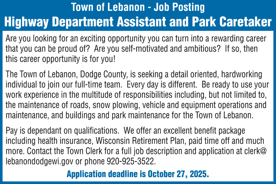 Oct 15, 2025. Town of Lebanon Jobs Ads from Watertown Daily Times