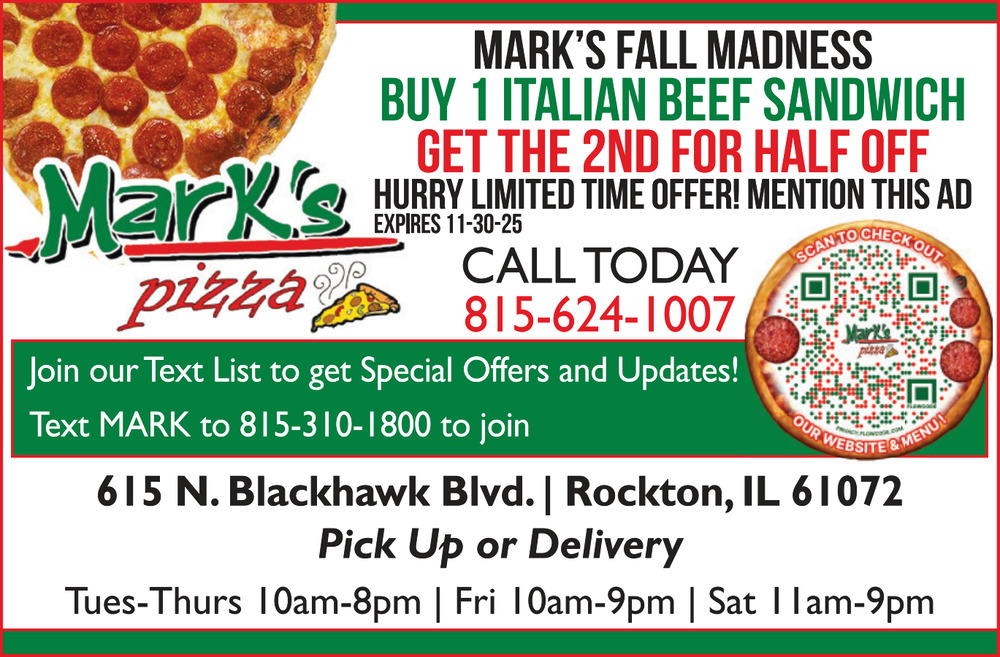 Oct 17, 2025. Mark's Pizza Restaurant Ads from Beloit Daily News