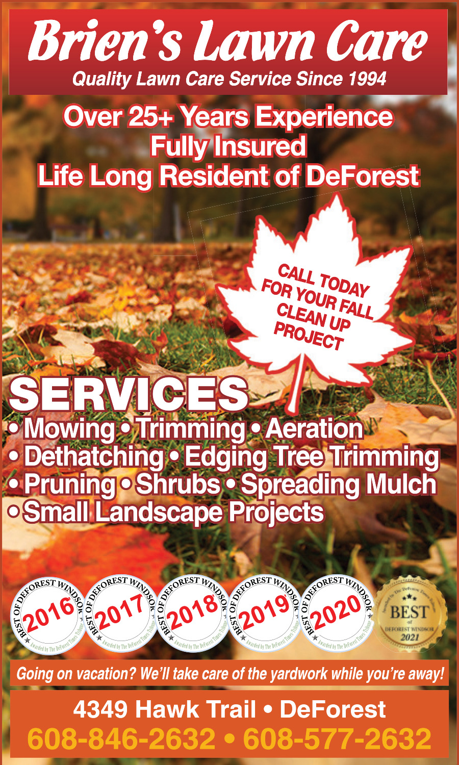 Ads for Brien's Lawn Care in De Forest, WI