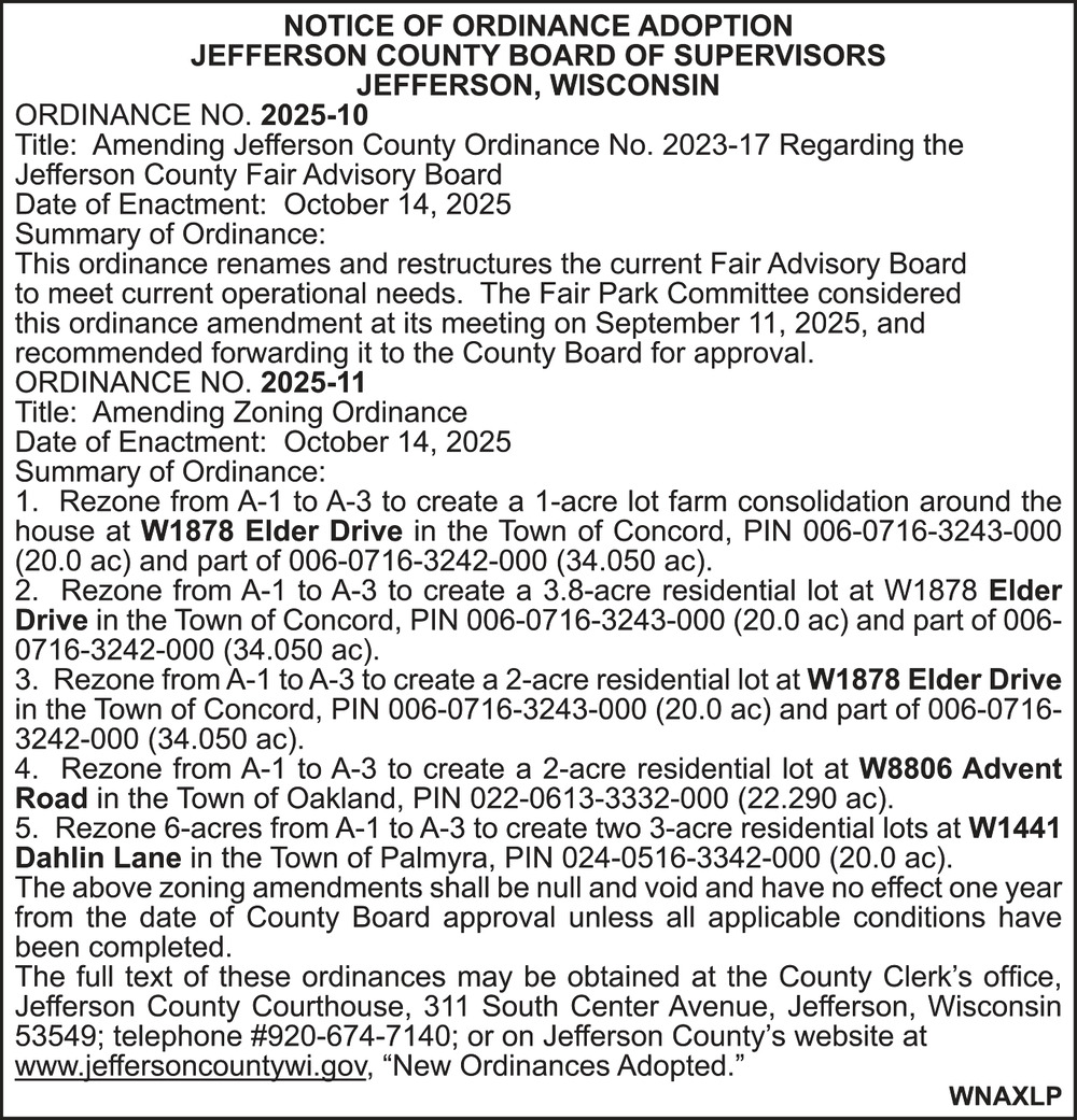 Public Notices in Jefferson, WI