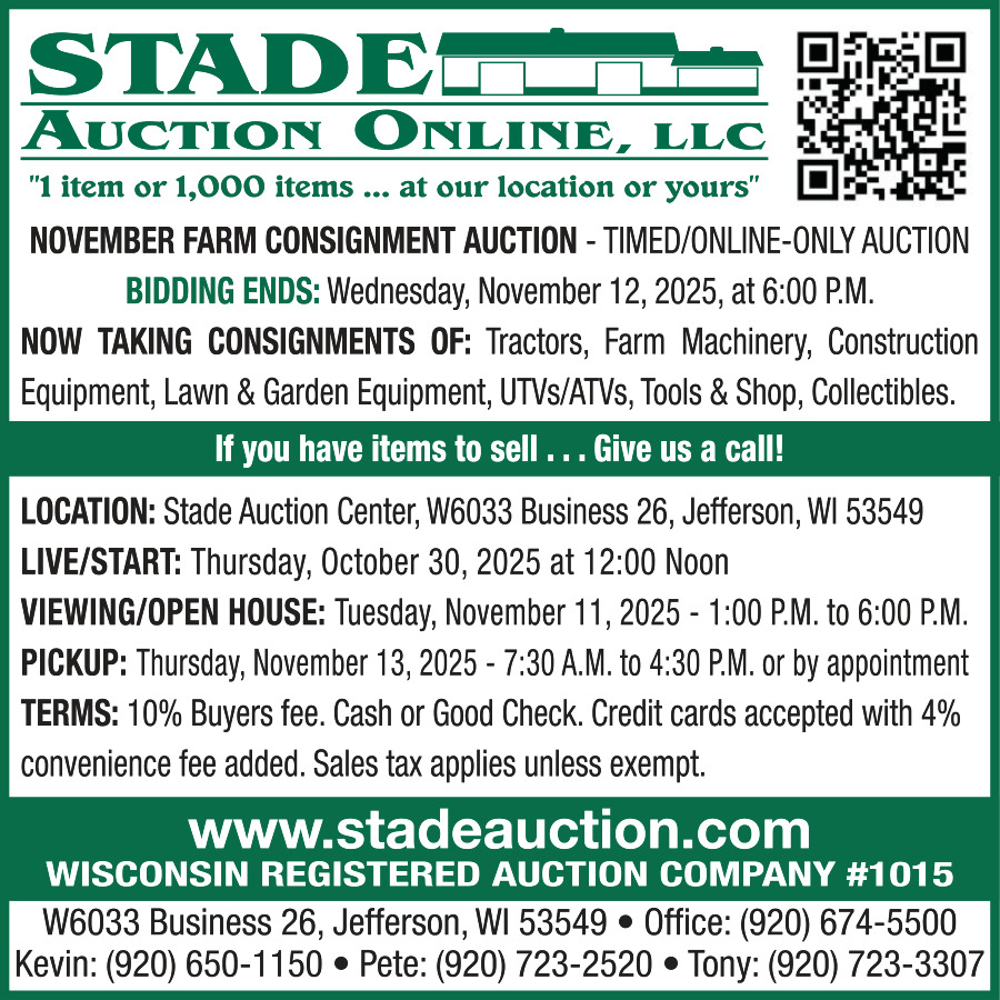 Ads for Stade Auction Online, LLC in Jefferson, WI