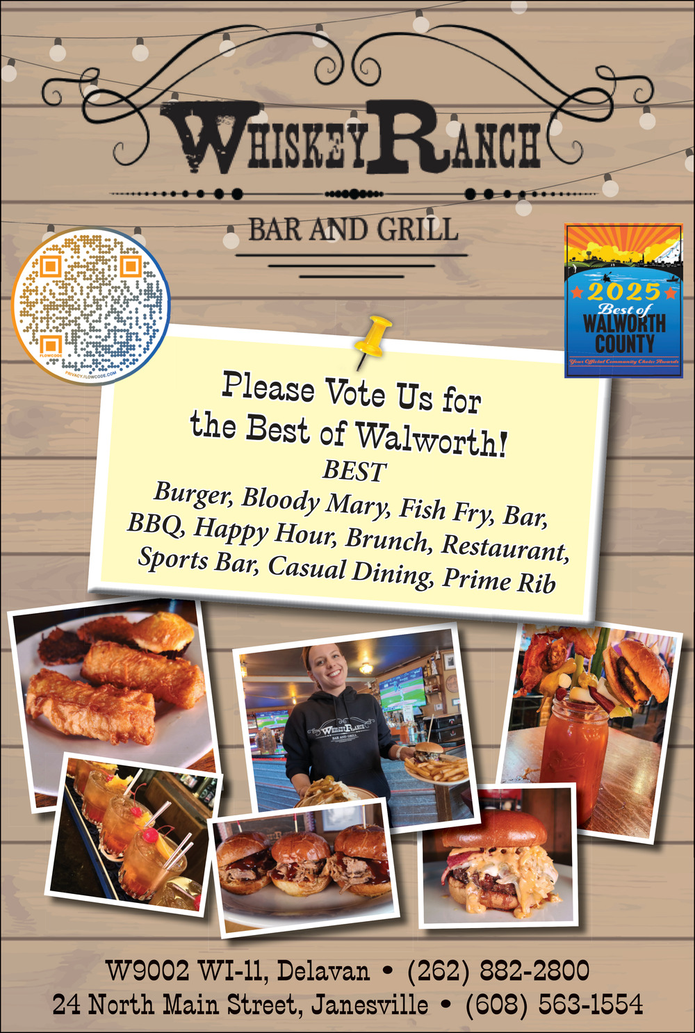 Nov 05, 2025. Whiskey Ranch Bar & Grill Restaurant Ads from Walworth County SmartShop