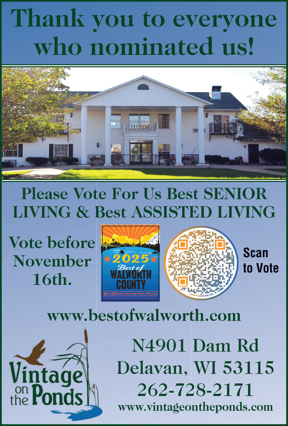 Nov 05, 2025. Vintage on the Ponds Senior Living Ads from Walworth County SmartShop
