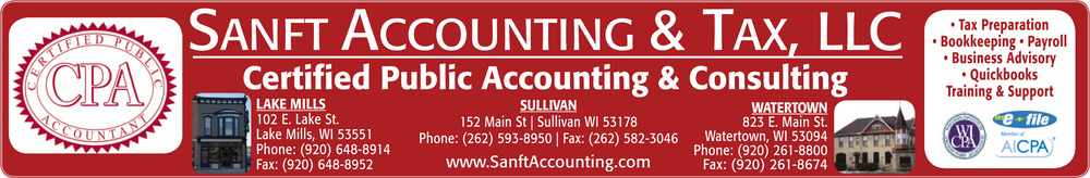 Ads for Sanft Accounting & Tax, LLC in Lake Mills, WI