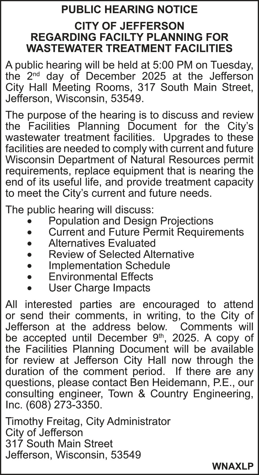 Nov 07, 2025. City Of Jefferson Public Notice Ads from Daily Jefferson County Union