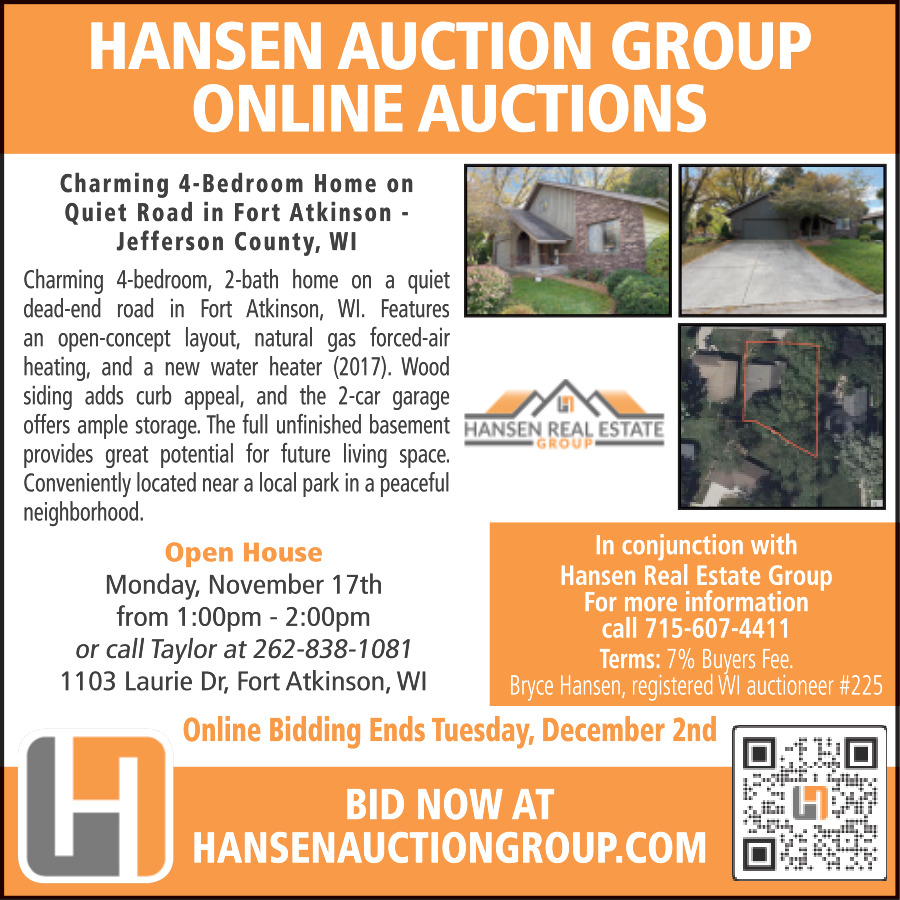 Nov 12, 2025. Hansen Auction Group Auction Ads from Daily Jefferson County Union