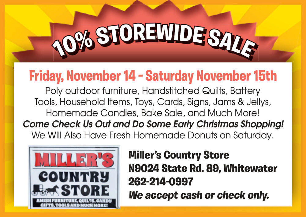 Nov 12, 2025. Miller's Country Store Grocery Store / Market Ads from Walworth County SmartShop