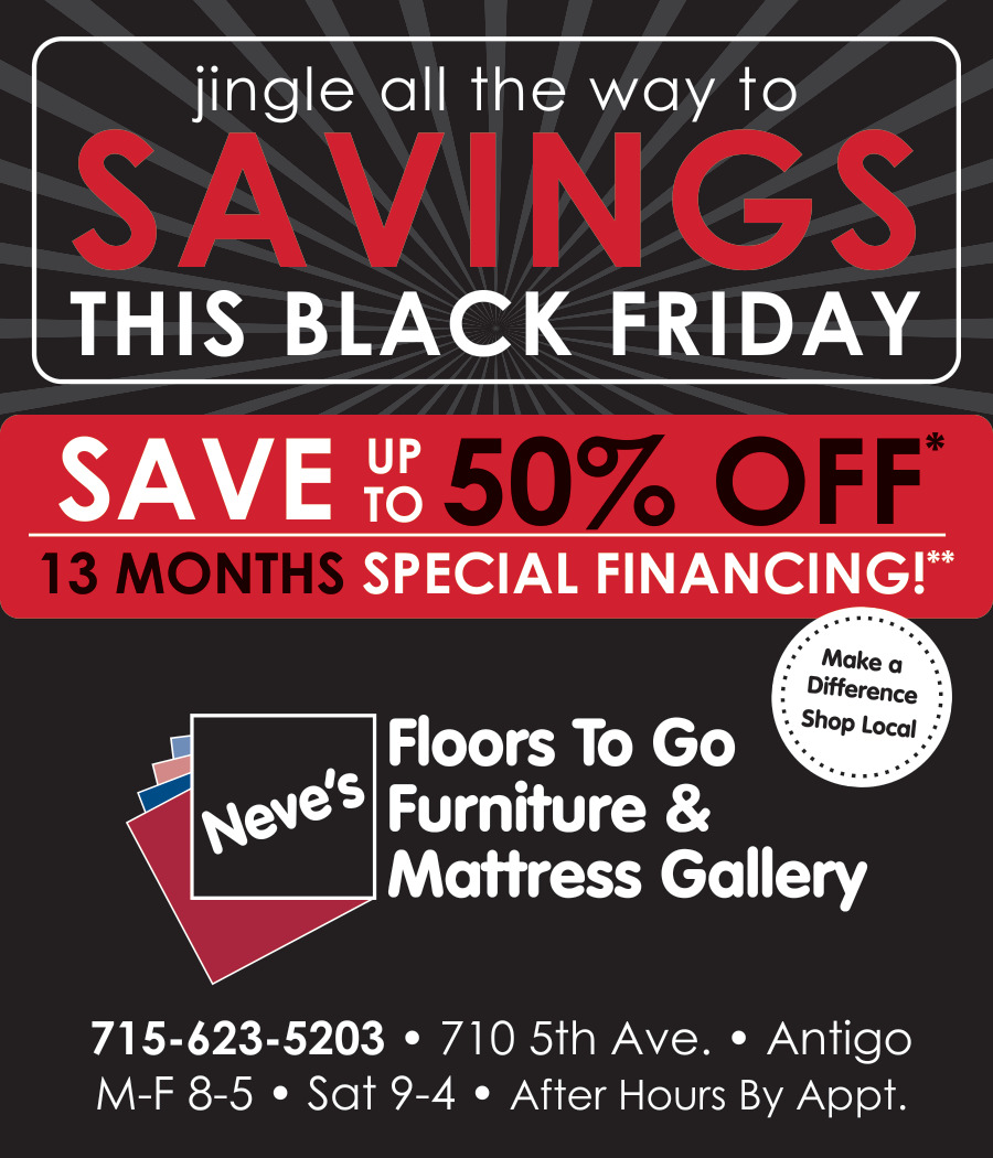 Nov 21, 2025. Neve's Floors to Go Furniture & Mattress Gallery Home Furnishing Ads from Antigo Daily Journal