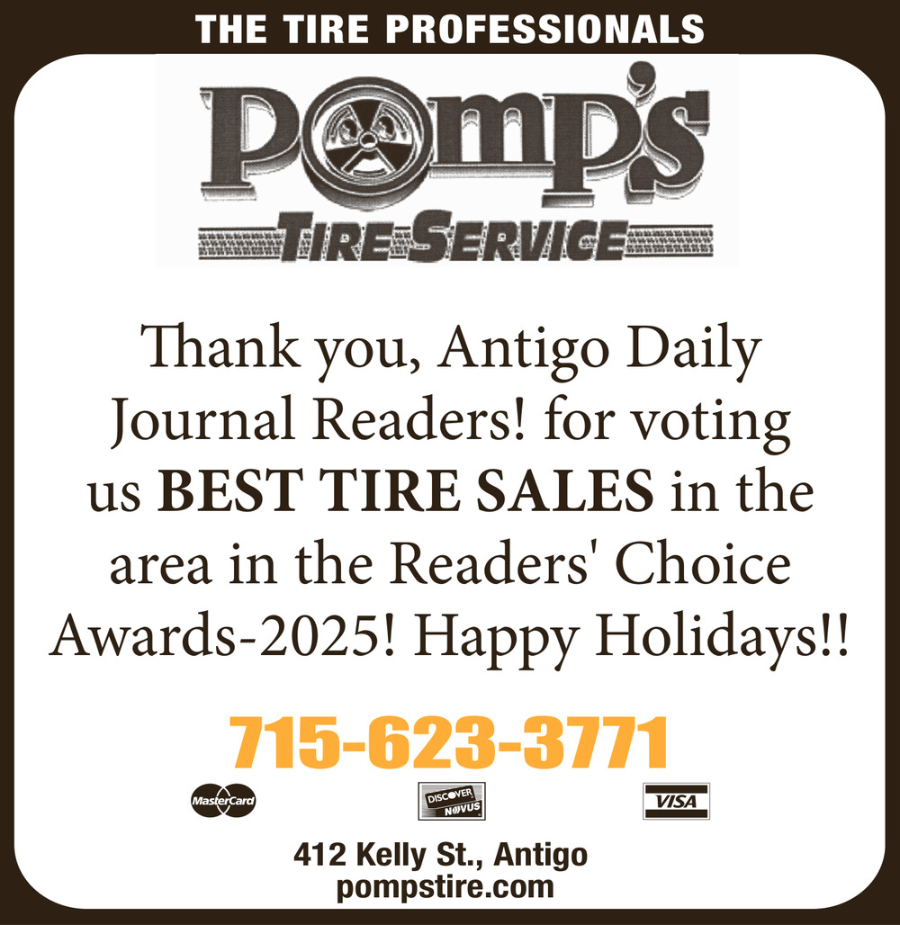 Nov 24, 2025. Pomp's Tire Auto Services Ads from Antigo Daily Journal