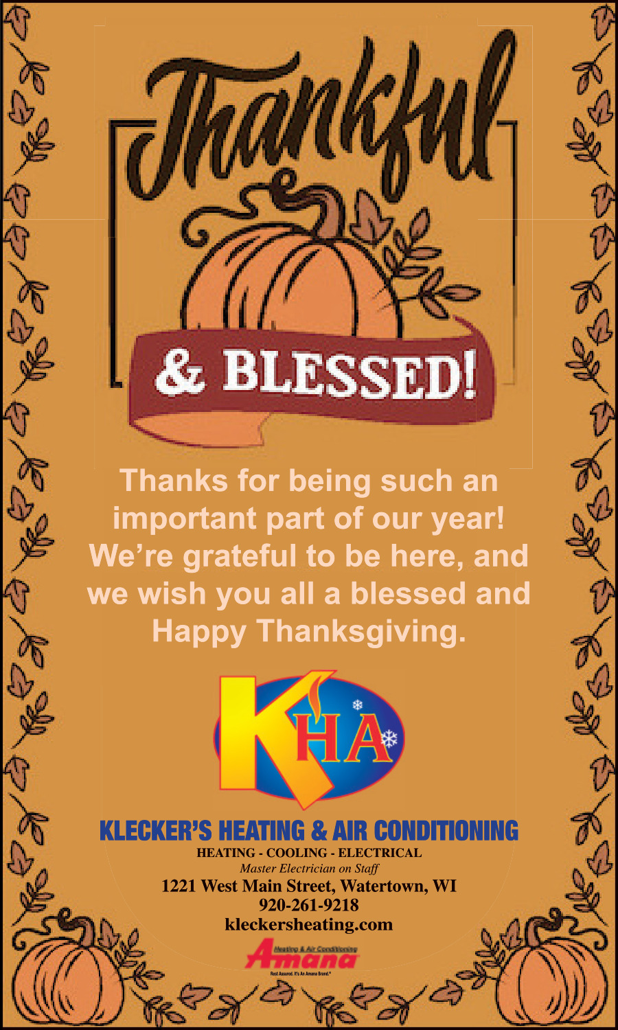 Nov 25, 2025. Klecker's Heating & Air Conditioning Home Improvements Ads from Watertown Daily Times