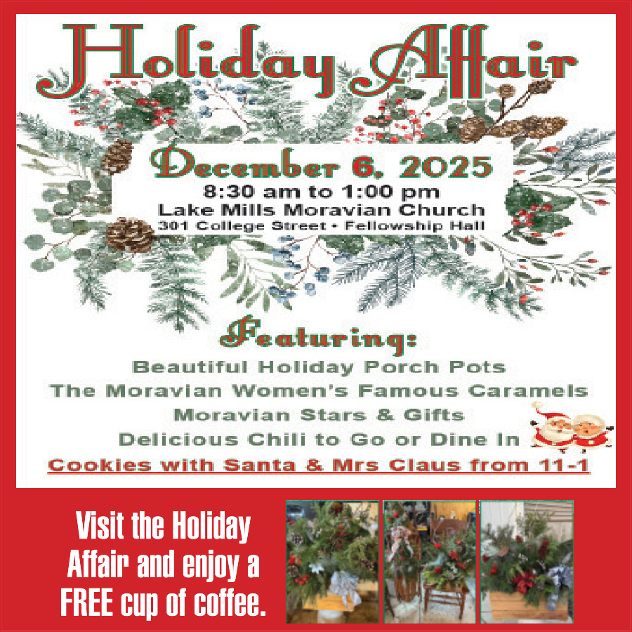 Nov 26, 2025. Lake Mills Moravian Church Events Ads from Leader Independent