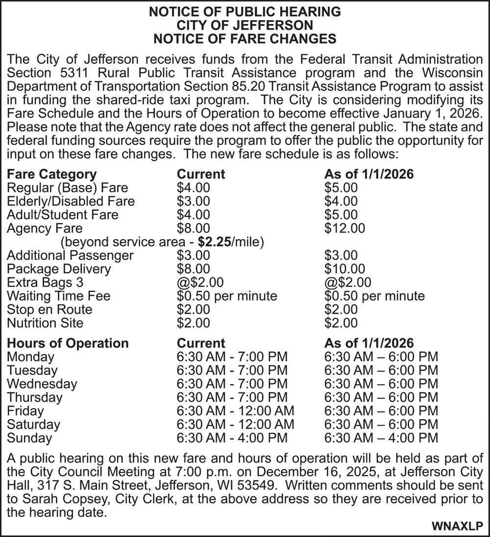 Nov 26, 2025. City Of Jefferson Public Notice Ads from Daily Jefferson County Union