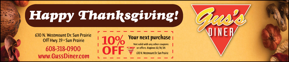 Ads for Gus's Diner in Sun Prairie, WI