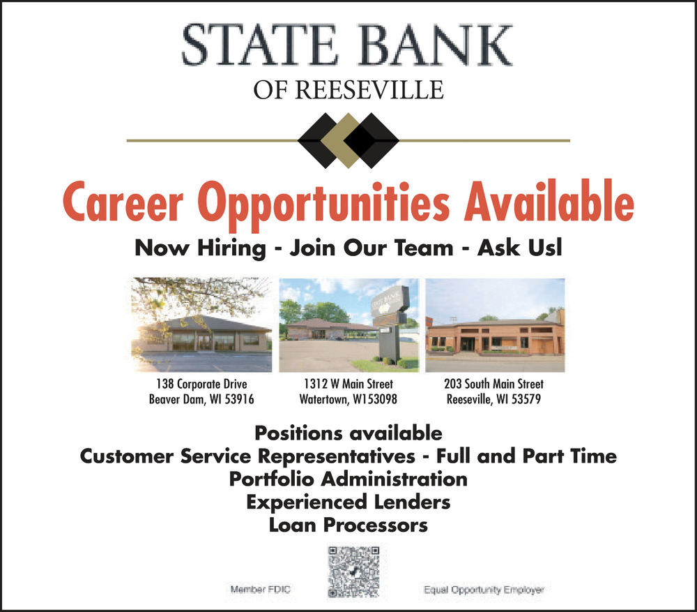 Dec 03, 2025. State Bank of Reeseville Jobs Ads from Watertown Daily Times
