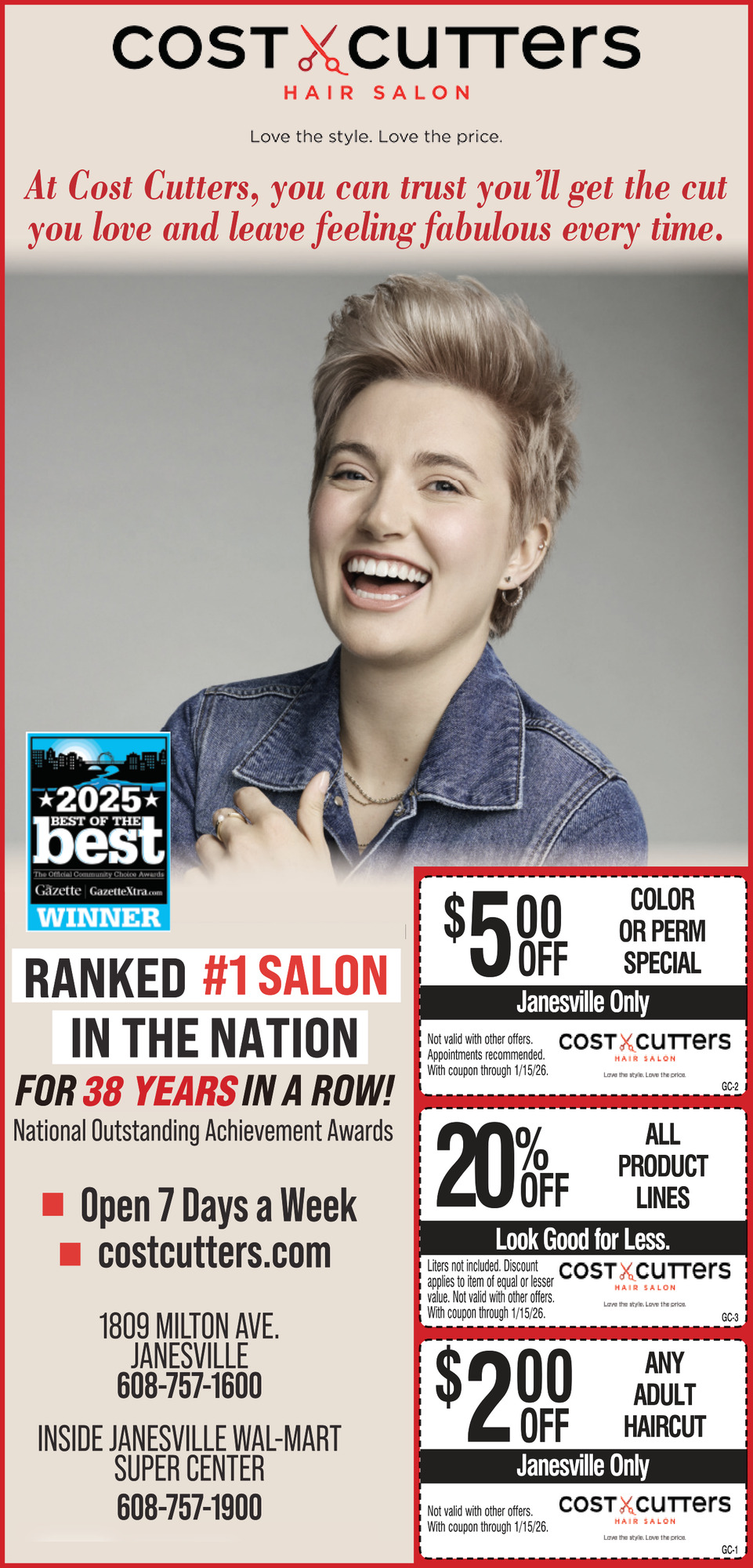 Dec 04, 2025. Cost Cutters Beauty Ads from Janesville Gazette