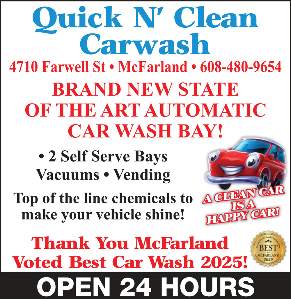 Ads for Quick N' Clean Car Wash in Mcfarland, WI