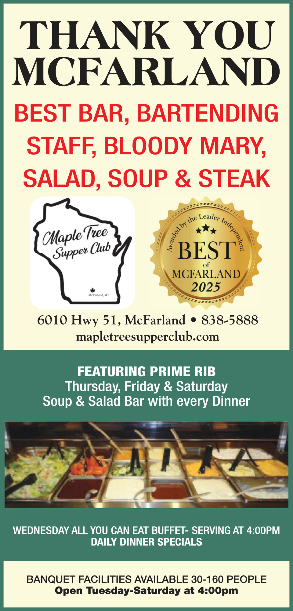 Dec 04, 2025. Maple Tree Restaurant Ads from Leader Independent