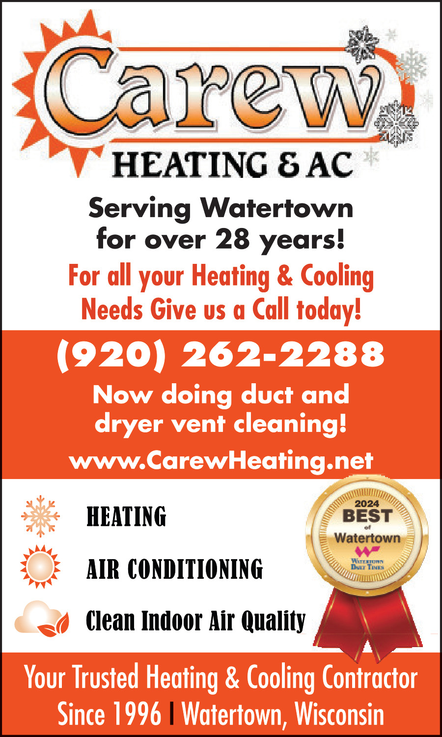 Ads for Carew Heating & AC, Inc. in Watertown, WI