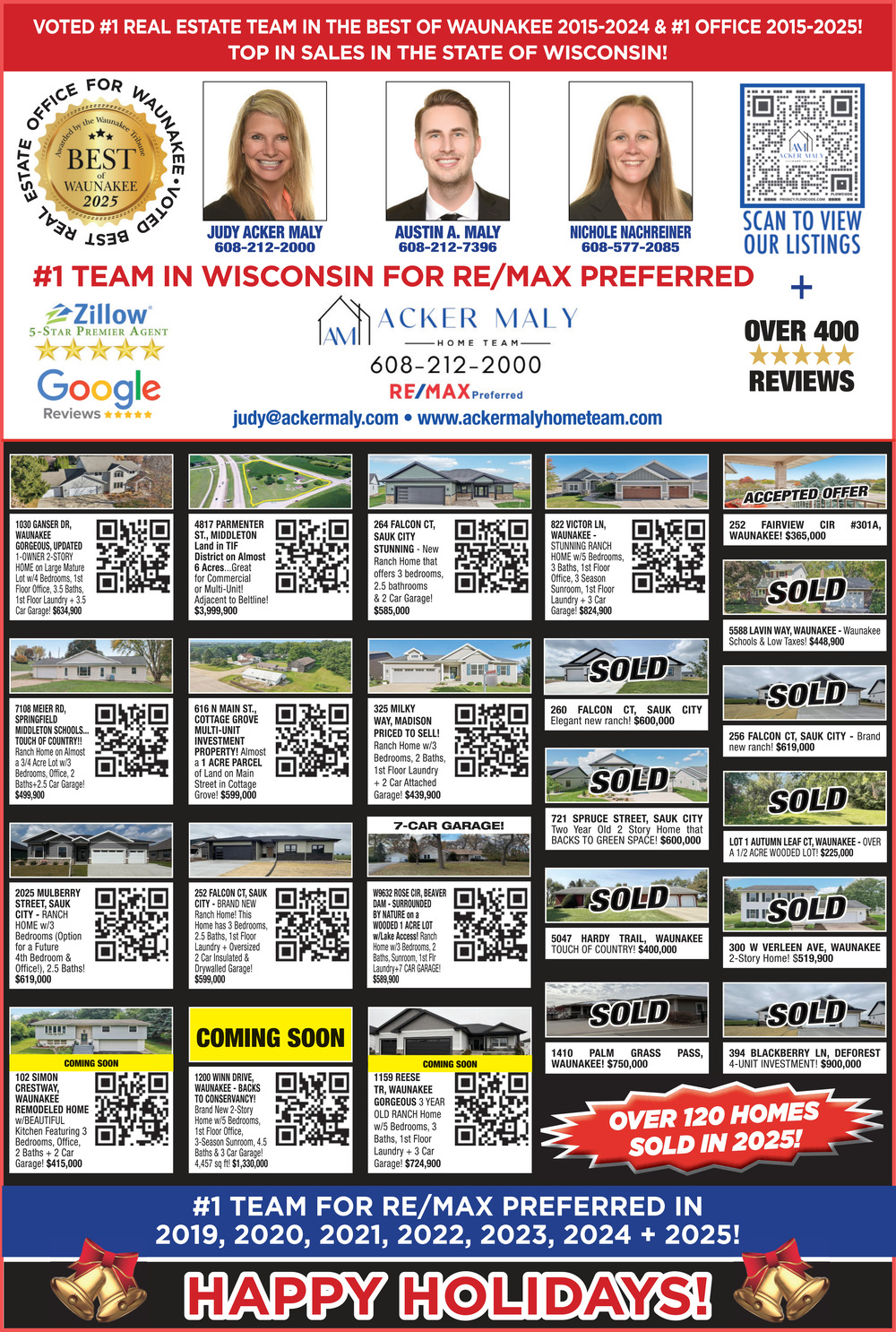 Dec 05, 2025. Re/Max - Acker Maly Home Team Real Estate Ads from Tribune Enterprise