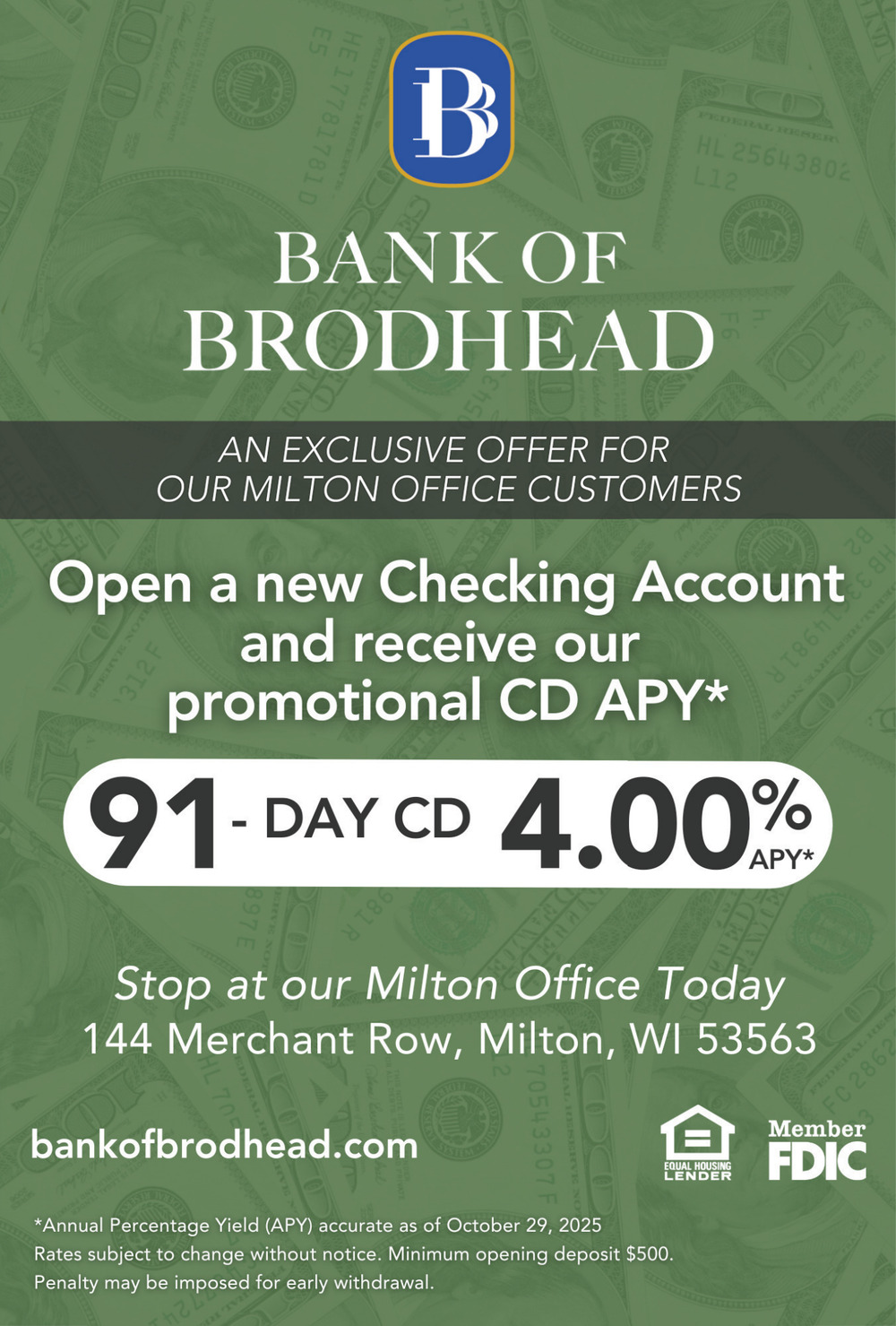Dec 12, 2025. Bank Of Brodhead Banking Ads from Milton Courier