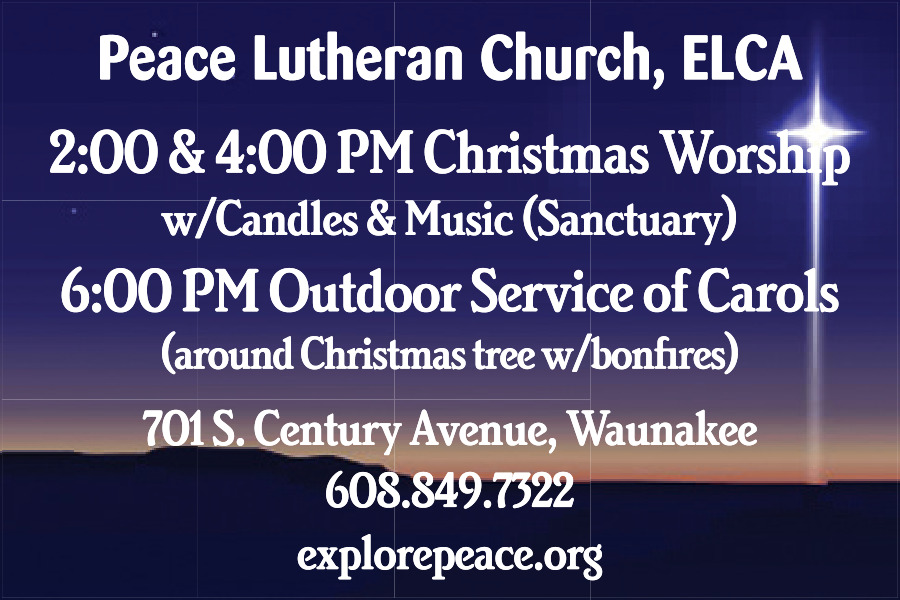 Dec 12, 2025. Peace Lutheran Church - Waunakee Church Ads from Tribune Enterprise