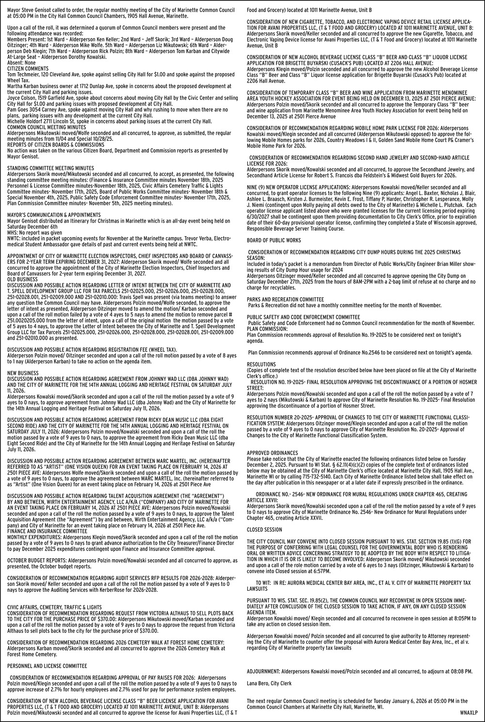 Dec 15, 2025. City of Marinette Public Notice Ads from EagleHerald