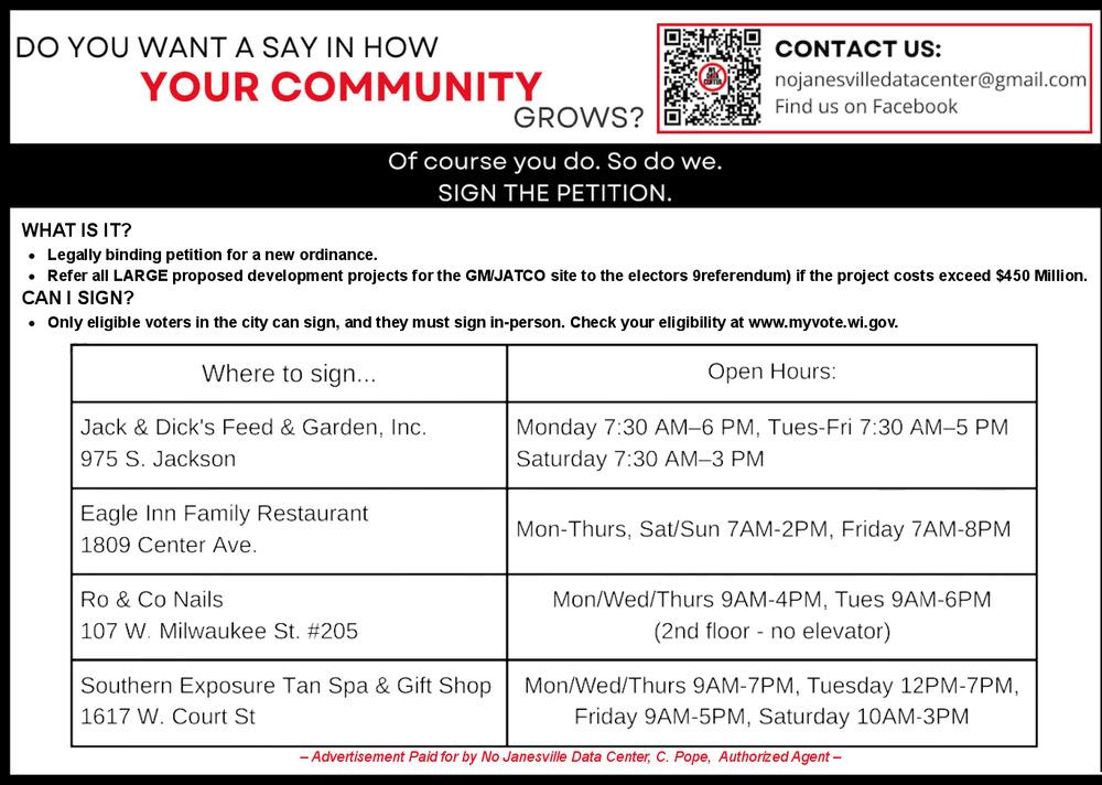 Dec 19, 2025. No Janesville Data Center Organization Ads from Janesville Gazette