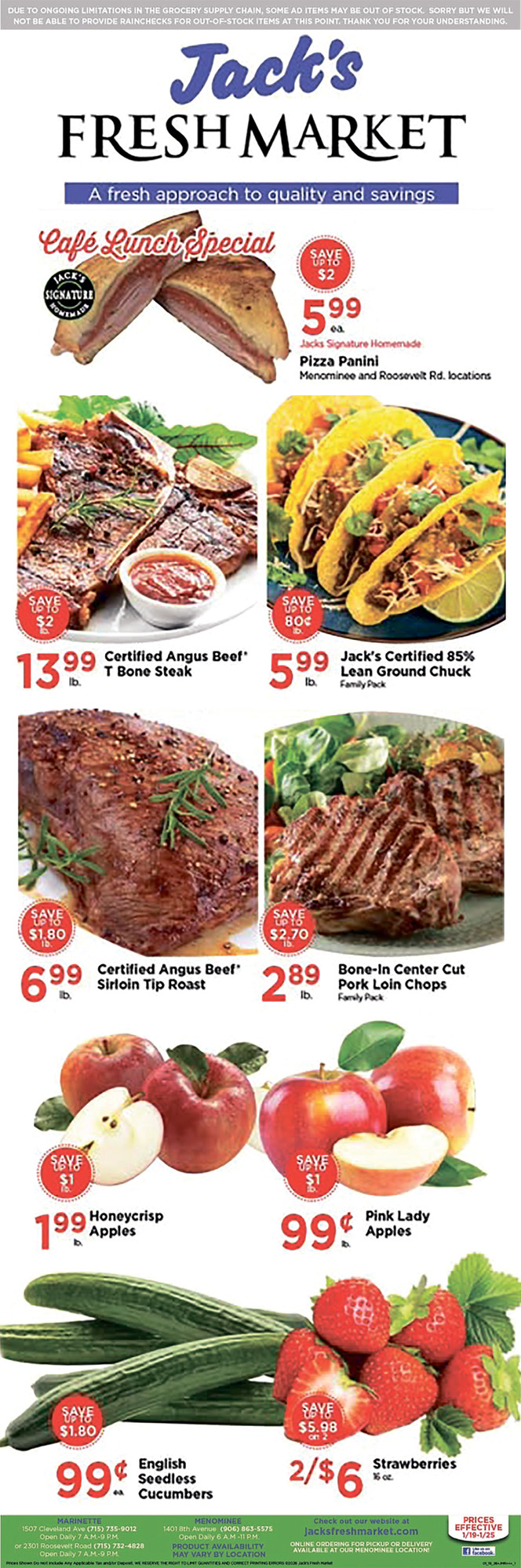 906-863-55751401 8th AveMenominee, MI 49858(Jack\\'s Fresh Market Menominee)