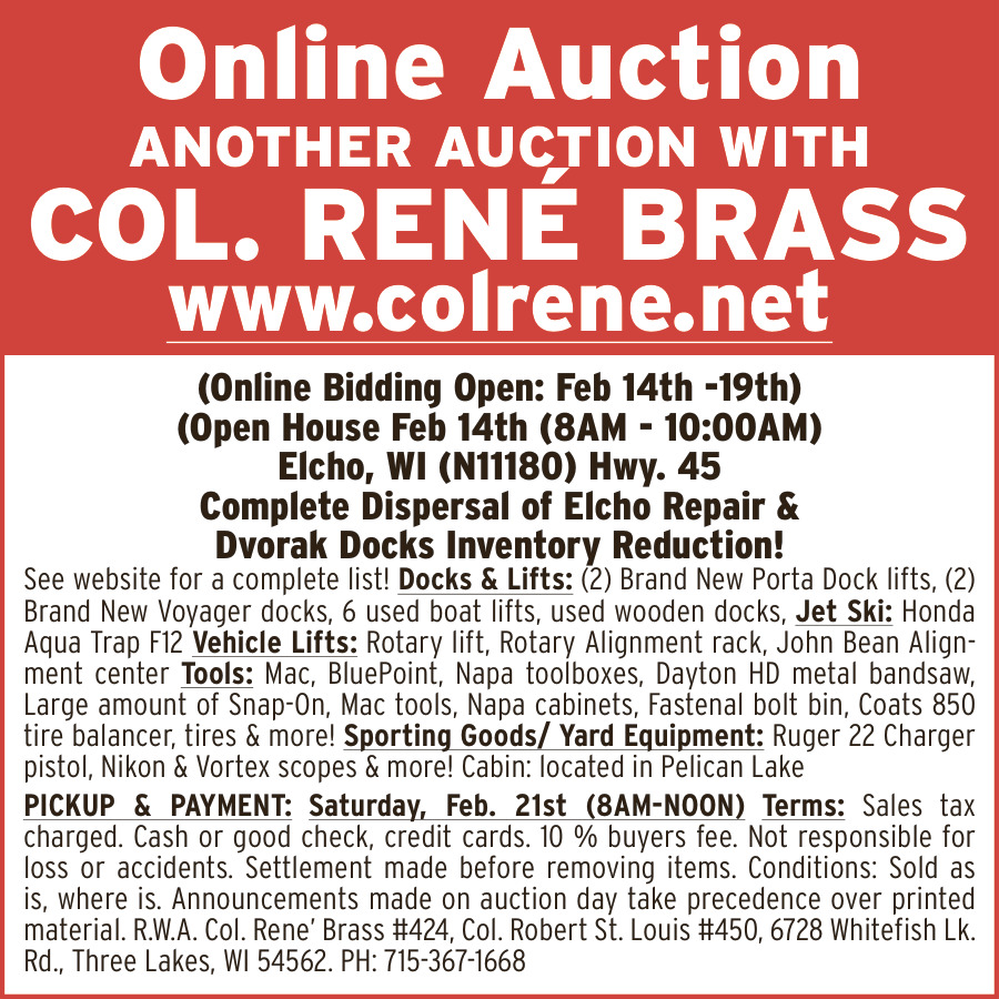 Feb 13, 2026. Col. Rene' Brass Real Estate Ads from Antigo Daily Journal