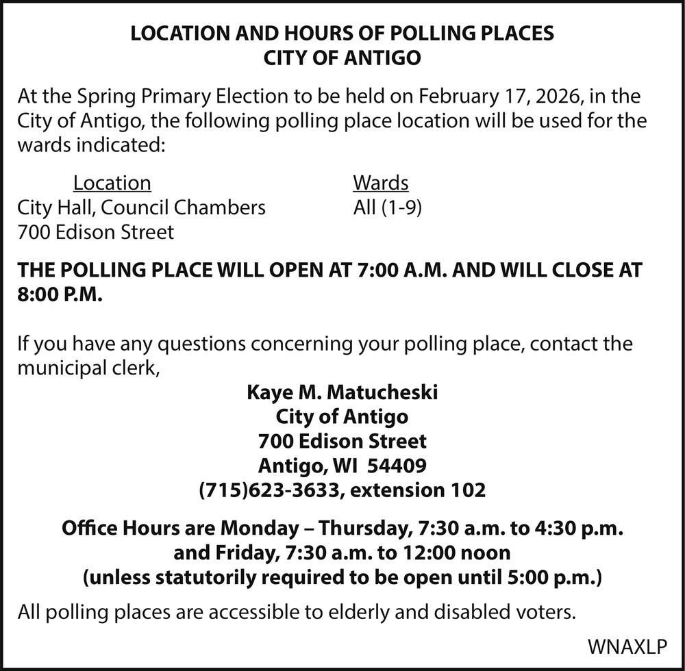 Feb 13, 2026. City of Antigo Jobs Ads from Antigo Daily Journal