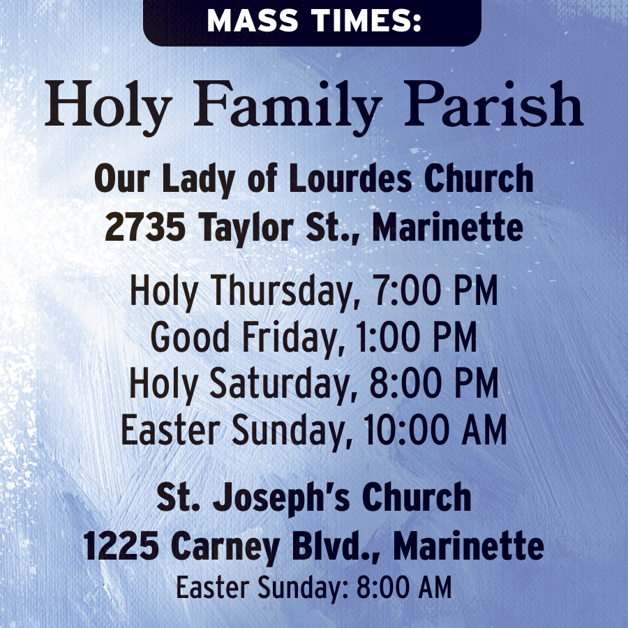 Ads for Our Lady of Lourdes Church - St. Joseph's Church in Marinette, WI