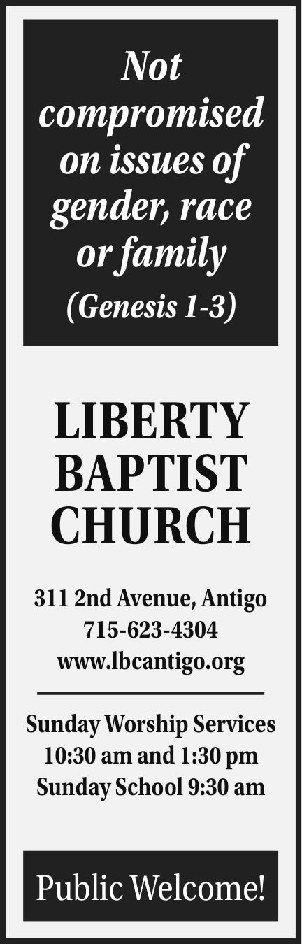 Apr 17, 2026. Liberty Baptist Church - Antigo Church Ads from Antigo Daily Journal